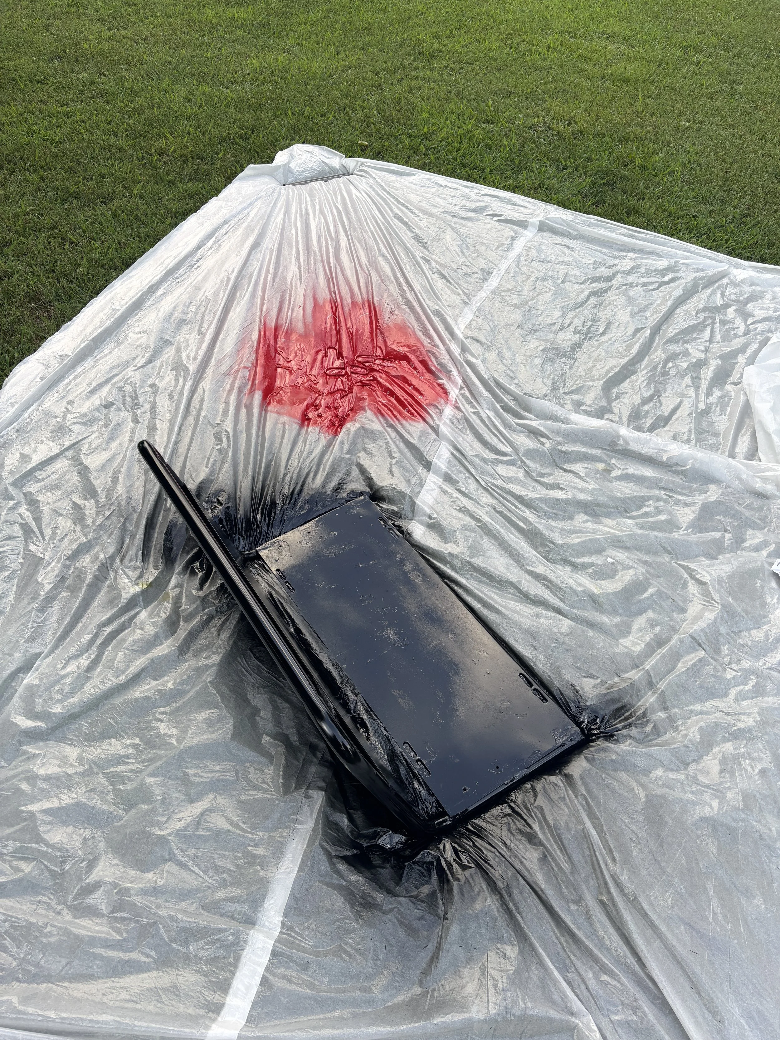 After getting it disassembled I then removed the rust from the surface of all of the frame pieces and re-coated them in a glossy black paint.